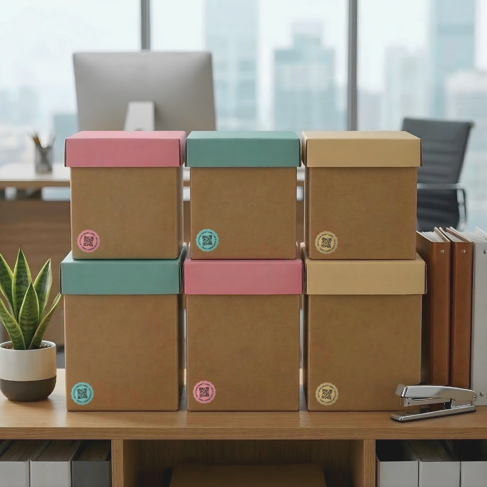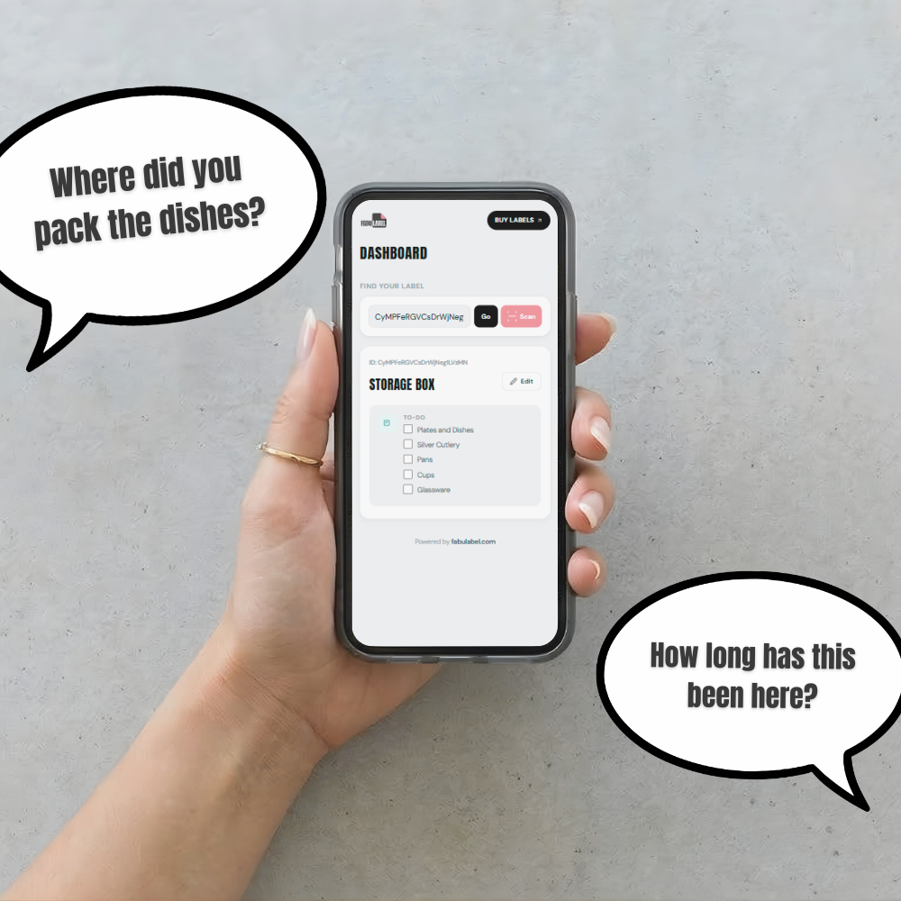 Instead of ripping open taped boxes, scan the label to see a checklist and photos of exactly what is packed inside.